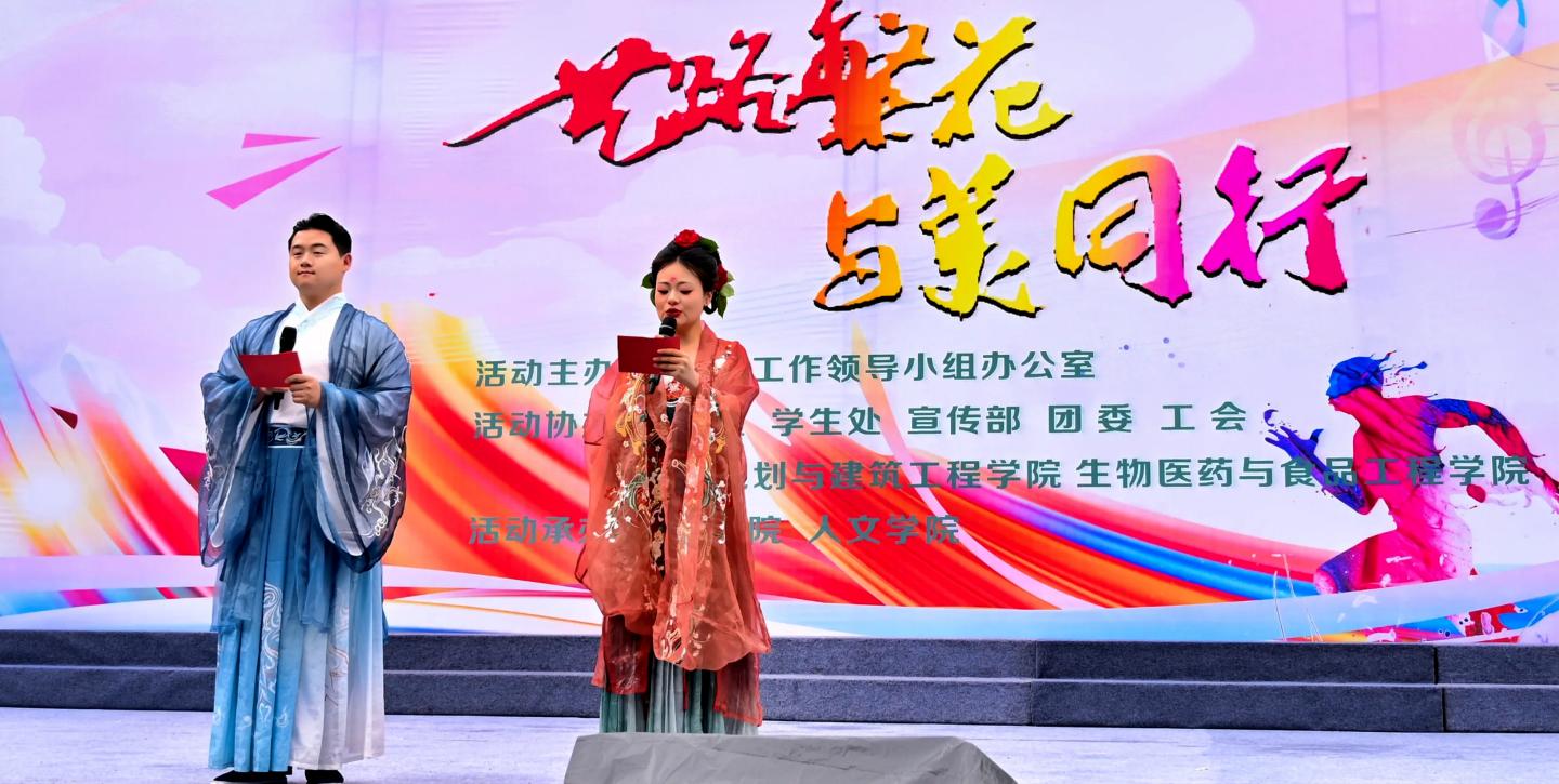 ?6月18日下午,我校舉辦“藝路繁華 與美同行”校園文化藝術節。校長權雅寧、副校長張向東,相關部門負責人及師生代表共計500余人參加活動。在藝術展演環節,水鼓表演、旗袍秀、詩歌朗誦、民族舞、古琴獨奏、合唱等近20個節目輪番上演,展現了充滿活力的校園文化藝術氛圍。在游園活動中,師生沉浸式參與“霓裳·重光”古裝造型賽、“詩海競帆”詩詞擂臺賽、“筆競風華”書法擂臺賽、“指尖生花”創意彩繪、“藝展芳華”美育趣味...