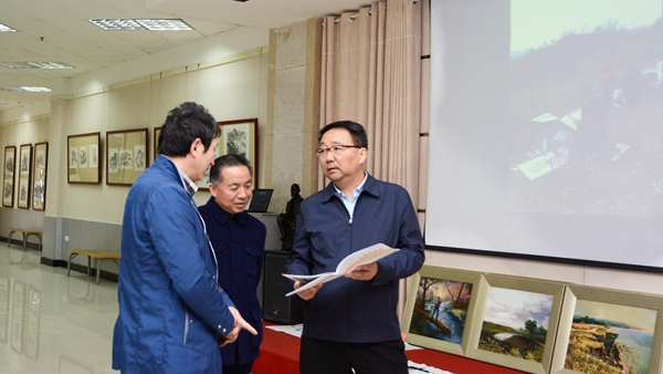 4月17日,藝術學院美術專業學生王聰“我心我塑” 畢業油畫展在藝術展廳拉開帷幕,校黨委書記龍治剛參觀了畫展。龍治剛在參觀中對王聰的創作水平給予了肯定,并勉勵他抓住重點,大膽突破,創作出更好的作品