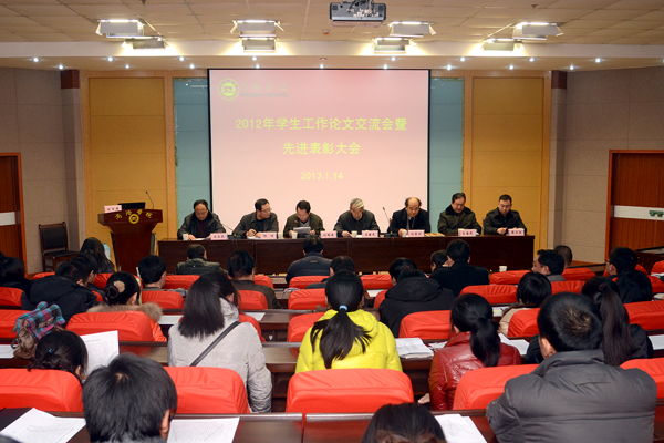 1月14日下午,我院召開2012年學生工作論文交流會暨先進表彰大會,交流研討學生工作研究成果,對2012年學生工作優秀工作日志、論文,優秀輔導員、班主任,先進集體和個人進行表彰。院黨委副書記左曉民、副院長劉建林出席大會。學院教務處、保衛處、招生就業處、院團委負責人,各系黨總支書記,受表彰的先進個人,全體輔導員和班主任參加了大會。會議由學生處處長石啟英主持。