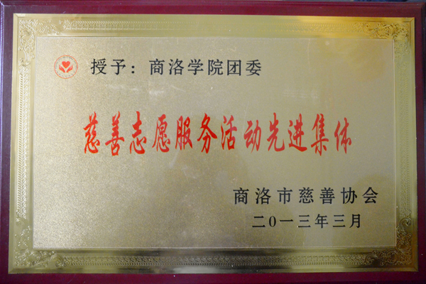 3月3日,陜西省慈善協會下發了《關于表彰2012年慈善志愿服務優秀團隊、慈善志愿服務先進個人“一元關愛”先進單位的決定》,我院青年志愿者協會榮獲“慈善志愿服務優秀團隊”稱號。3月12日,商洛市慈善協會下發了《關于表彰2012年度慈善明星企業和慈善工作先進集體的決定》,并授予我院團委“慈善志愿服務活動先進集體”稱號。