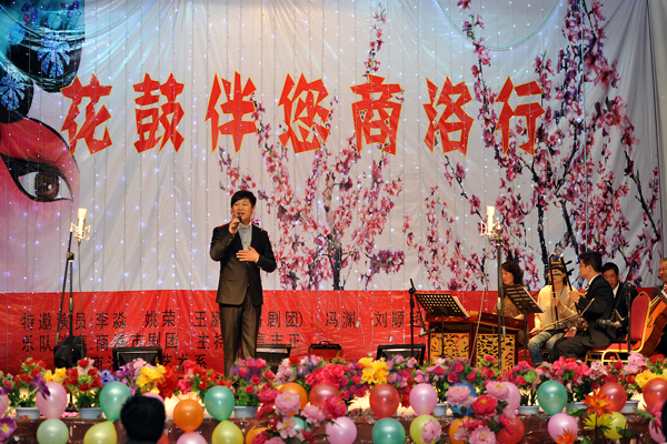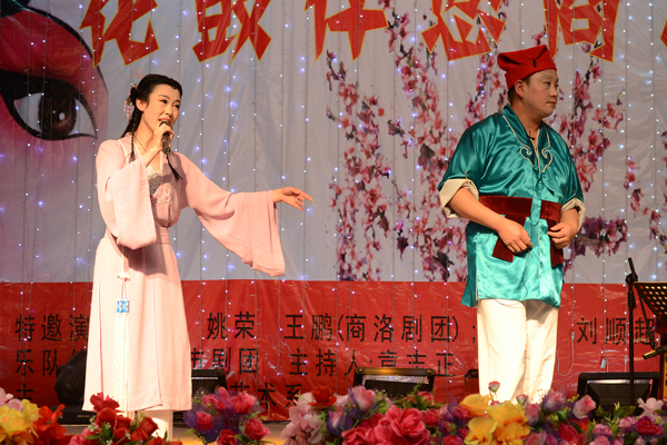 4月10日晚,由藝術系主辦的“花鼓伴您商洛行” ---王紅梅商洛花鼓教學改革實踐成果匯報音樂會在大學生活動中心隆重舉行。校領導左曉民、王思懷、劉建林、魏書堂,藝術系師生和校內外花鼓戲迷觀看了表演。商洛電視臺等地方媒體也現場進行了采訪報道。