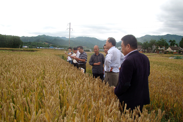 5月28日,陜西省種子管理站研究員姚撐民,西北農林科技大學農學院小麥育種專家高翔、謝惠民教授,商洛市種子管理站副站長賈振江、高級農藝師周龍等5位專家,對我校生物醫藥工程系高級實驗師于浩世選育的小麥新品種“商麥1619”進行了田間預審。校黨委副書記、院長張景書接待了專家一行,并對我校小麥育種工作的開展提出了具體要求。