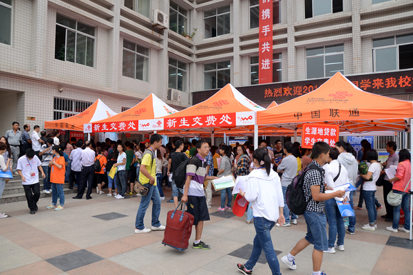 為保證新生順利入學,學校在火車站、汽車站和校門口分別設立迎新接待點,為新生和家長們提供服務。校內設立了新生咨詢處、行李寄存處、公安執勤處、醫療服務處、家長休息區,還專門為家境貧困的學生開放“綠色通道”。路口醒目的位置都有各系的迎新指示牌,志愿者們穿梭其中為新生提供各類咨詢和幫助。
