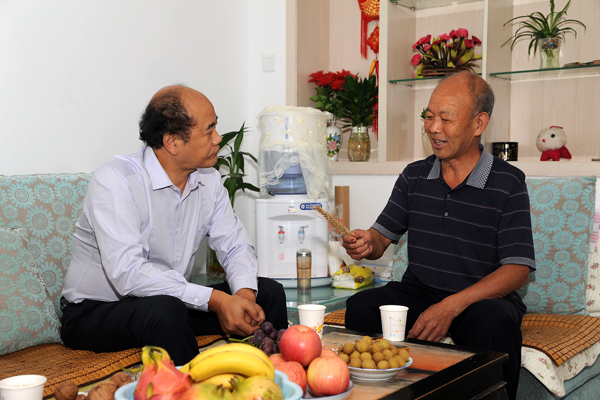 在于浩世家中,劉建林詳細了解了于浩世在小麥育種研究中取得的最新成果,并向他為學??蒲蟹盏胤焦ぷ髯龀龅呢暙I表示感謝。劉建林說,小麥育種工作是我校改革發展中涌現出的一個亮點,今后要把這項工作深入持續下去,可以考慮成立商洛學院良種繁育中心。希望于老師繼續作為育種工作的帶頭人,培養一支精干的科研團隊,為我校的發展凝煉特色。劉建林要求生物醫藥工程系高度重視和支持此項工作,積極協調、解決實驗田和實驗室問題,再出新成果、多出好成果。