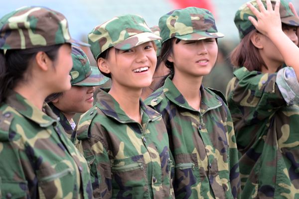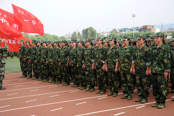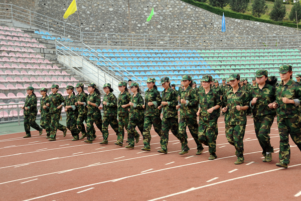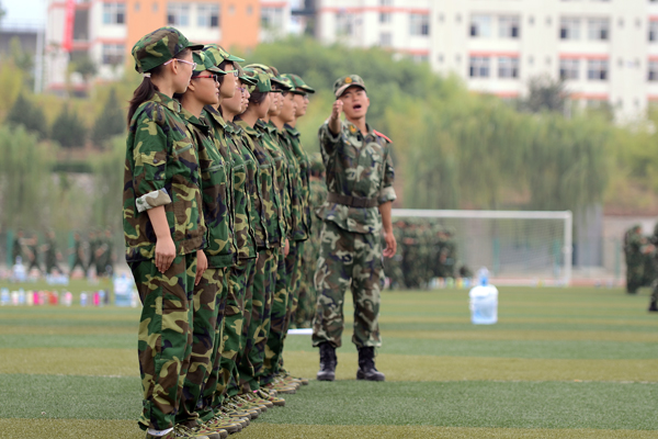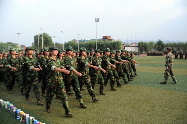 9月12日,2013級新生軍訓已進入第6天。來自全國24個省(市、自治區)的3000余名學生編成6個營36個連,正在熱火朝天地進行軍事訓練。涼爽多云的天氣為同學們的訓練提供了不少便利,綠茵茵的青草和橄欖綠的迷彩軍裝相互輝映,讓同學們顯得活力十足。軍官們嚴格要求新生整理軍容、端正軍姿,不時親自示范,手把手糾正基本動作。同學們在教官的帶領下認真訓練,絲毫沒有懈怠,已完成了軍姿、整理著裝、稍息、立正、齊步、正步等訓練科目。
