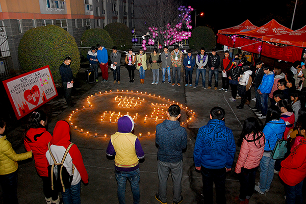 3月6日晚,我校學生自發組織起來為昆明“3·01”暴力恐怖事件中遇難的同胞默哀,為傷者祈福。在肅穆凝重的氛圍中,同學們點燃一根根蠟燭,拼成愛心圖案和“昆明 3·01”字樣。大家為遇難者默哀3分鐘,不少同學的眼眶漸漸濕潤。一位同學哽咽著說:“昆明發生的暴力事件讓人震驚和心寒,無辜生命的離去,讓我們更加珍惜自己的生命,希望世界和平安定,大家都可以平安幸福地生活。愿生者堅強,愿死者安息。”