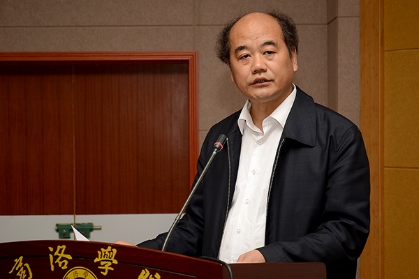 新組建的經濟與管理學院院長樊景博代表二級學院作了表態發言。他表示,將秉持把學校建設好的責任心和使命感,不負領導和同志們的重托,緊緊依靠廣大教職員工,用心血和汗水、責任和使命來詮釋不屈不撓、奮發向上的商洛學院人的精神風貌。