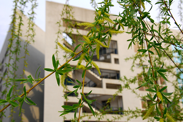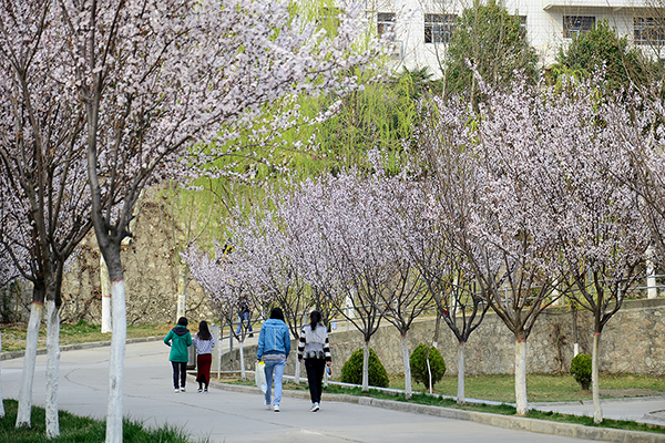 四月的校園,萬物復蘇,氣溫回暖,各種植物退下了冬日的臃腫,換上了充滿生機的春裝,校園里一派暖春的景象。柳樹初生的嫩芽隨風搖曳,些許杏花展露微白的花蕊,桃花偷偷羞紅的笑臉,舞活了整個生機盎然的校園。同學們享受著鮮花和暖陽,在春光明媚的校園里讀書、學習;趁著春意踏青、春游,用手機和相機留下美好的瞬間,在操場上鍛煉的人也漸漸增多。