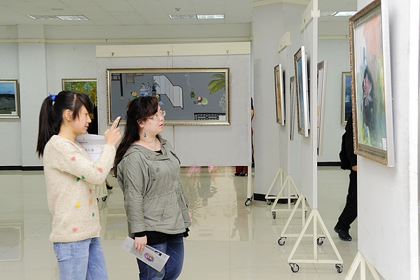 展廳內(nèi)人流如潮,我校師生紛紛前來參觀,并不時拿出相機、手機拍照。王思懷、魏書堂對楊靜的作品給予了高度評價,并希望楊靜和廣大教師們能以作品感染學生,用創(chuàng)作中的領悟教育學生,在提高自身業(yè)務能力、科研水平的同時,培養(yǎng)出一批批高素質(zhì)人才。藝術學院美術學專業(yè)的一位學生說,參觀畫展后覺得受益匪淺,楊靜老師通過高超的繪畫技巧和個人獨特的藝術修為,將東方精神與當代藝術完美結合,給大家?guī)砹艘环N無限的想象之美,本次畫展不但為同學們提供了一次非常好的學習機會,更激發(fā)了他們從事藝術學習和創(chuàng)作的熱情。