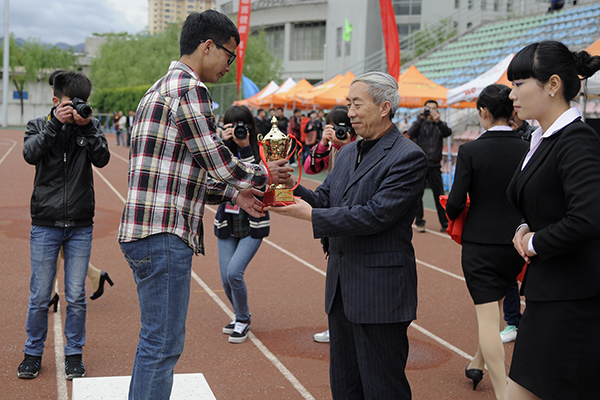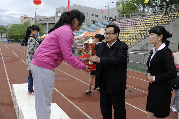在熱烈的掌聲中,校黨委書記張景書為獲得精神文明獎的集體頒獎,黨委副書記左曉民為獲得男女團體前三名的集體頒獎,副校長魏書堂為獲得男子團體和女子團體前三名的集體頒獎。