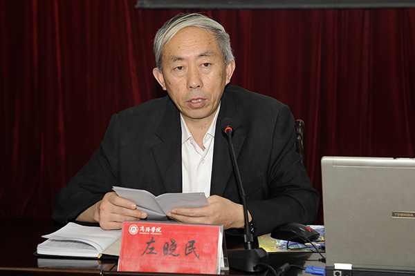 就進一步學(xué)習(xí)貫徹習(xí)近平總書記系列講話精神,左曉民提出了4點要求:一是要把學(xué)習(xí)活動作為長期任務(wù),堅持、深入學(xué)習(xí)下去;二是要強化理論學(xué)習(xí)的問題意識,帶著問題學(xué);三是要全面準確、深入領(lǐng)會習(xí)近平總書記系列重要講話的精神實質(zhì),學(xué)立場、學(xué)基本觀點、學(xué)方法;四是要在理論聯(lián)系實際上見成效,以迎接教育部本科教學(xué)合格評估工作為中心,把習(xí)近平總書記的系列重要講話精神轉(zhuǎn)化為指導(dǎo)促進工作的思路和科學(xué)的工作方法,轉(zhuǎn)化為推動學(xué)校改革發(fā)展的實際行動,把習(xí)近平總書記視察北大是提出的“勤學(xué)、修德、明辨、篤實”8個字滲透在評建工作中,使我校的辦學(xué)水平、辦學(xué)質(zhì)量、服務(wù)地方的能力和核心競爭力得到較大提升。