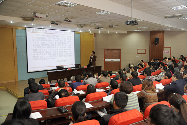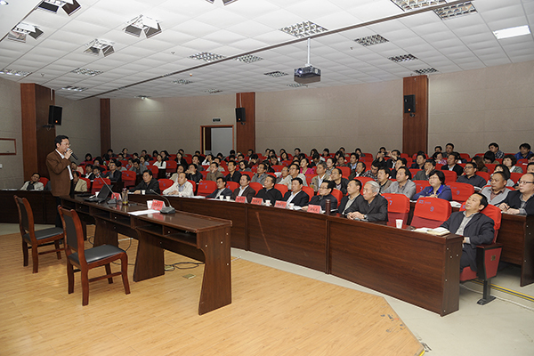 校領(lǐng)導(dǎo)張景書、左曉民、王思懷、魏書堂,各二級(jí)學(xué)院負(fù)責(zé)人、教學(xué)機(jī)構(gòu)負(fù)責(zé)人,全校副高職稱及以上人員聽取了報(bào)告。報(bào)告會(huì)由黨委副書記左曉民主持。