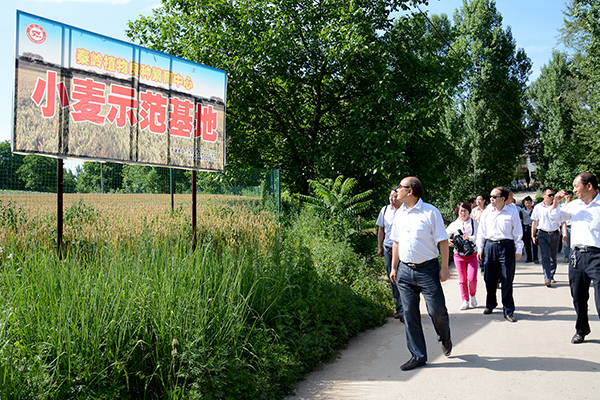 劉建林和葉赟為秦嶺植物良種繁育中心試驗示范推廣站揭牌,并在育種專家、技術人員陪同下先后參觀了宏泰金銀花專業合作社、商洛市中藥材金銀花GAP科研工程技術研究中心科研基地、金銀花中草藥養生雞場、秦嶺植物良種繁育中心小麥示范基地、小麥新品種“商麥1619”良種示范田和寺坡小白黃瓜提純復壯田,在田間地頭現場考察了秦嶺植物良種繁育中心各項科研成果的后續試驗、開發、應用、推廣等轉化活動,調研了繁育中心在人才、科技、資源等方面的發展需求。