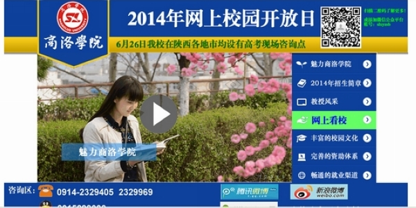該平臺將以圖片、文字及視頻形式為廣大報考學生介紹我校校園風景、師資力量、校園文化、學生資助和就業渠道等信息。報考學生可通過我校“網上看校”鏈接自行瀏覽學校各地標建筑3D模型圖和實景照片,以便更直觀和生動地了解、體驗校園環境。此外,該平臺通過QQ、微博、微信等新媒體實現了更加暢通的在線咨詢服務,報考學生可與學校招生工作人員進行實時在線交流,第一時間獲得所需要的高考志愿填報信息。