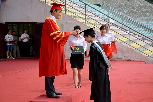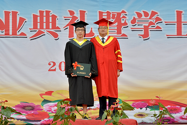 伴隨著校歌《正道直行做棟梁》激昂的旋律,畢業典禮圓滿結束。在學士學位授予儀式上,校長、校學士學位評定委員會主席劉建林宣讀了《商洛學院關于授予翟嘉梁等1902名畢業生學士學位的決定》。校領導劉建林、左曉民、王思懷、魏書堂分別為獲得學士學位的畢業生正冠撥蘇、頒發學位證書,并同他們一一合影留念。