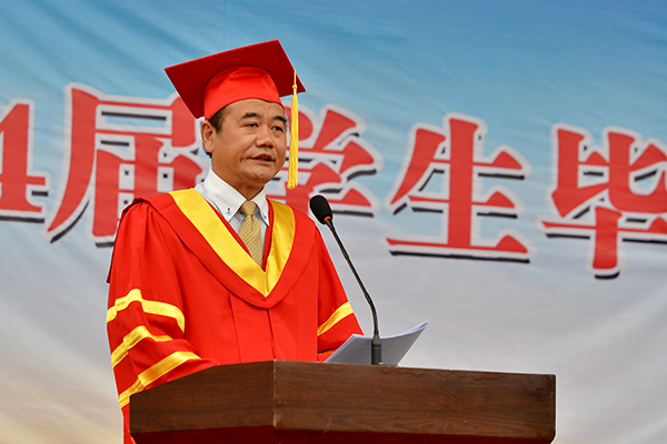 校黨委書記張景書、校長劉建林、校黨委副書記左曉民、紀委書記王思懷、副校長魏書堂出席,各院(部)黨政負責人、各職能部門負責人、2014屆畢業生及輔導員參加了畢業典禮。左曉民主持畢業典禮及學士學位授予儀式。