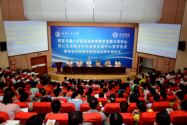 為加強我校青年教師隊伍建設(shè),造就一支德才兼?zhèn)洹⒔虒W(xué)科研能力強的骨干隊伍,培養(yǎng)一批學(xué)術(shù)思想活躍、創(chuàng)新能力強、富有奉獻精神的拔尖人才,7月5日,西安交通大學(xué)國家級教師教學(xué)發(fā)展示范中心與我校教師教學(xué)發(fā)展中心簽訂對口支持合作協(xié)議,并對我校89名青年教師進行了為期兩天的教學(xué)培訓(xùn)。陜西省教育廳教師工作處副處長樊婧,西安交通大學(xué)國家級教師教學(xué)發(fā)展示范中心主任馬知恩、副主任鮑崇高,校長劉建林、校黨委副書記左曉民出席簽字儀式。這是西安交通大學(xué)首次與兄弟高校簽訂合作協(xié)議,對外開展教師教學(xué)培訓(xùn)工作,同時也標(biāo)志著我校2014年青年教師培訓(xùn)班正式開班。