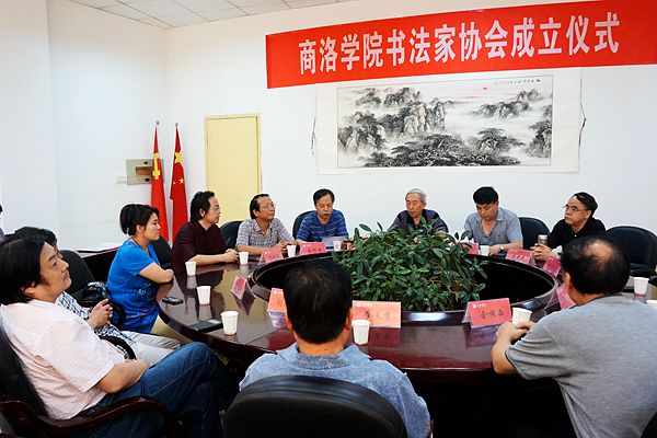 7月18日,我校書(shū)法家協(xié)會(huì)成立儀式暨座談會(huì)在圖書(shū)館一樓舉行。校黨委副書(shū)記左曉民,省書(shū)法家協(xié)會(huì)常務(wù)副主席李杰民,中國(guó)書(shū)法家協(xié)會(huì)會(huì)員、西安交通大學(xué)人文學(xué)院中國(guó)書(shū)法系教授楊鎖強(qiáng),終南水墨畫(huà)研究院院長(zhǎng)、著名書(shū)畫(huà)家王習(xí)哲,老一輩著名山水畫(huà)家楊祿奎,著名書(shū)法家王行舟,商洛市文聯(lián)黨組書(shū)記王良、市書(shū)法家協(xié)會(huì)常務(wù)副主席余振西、商州區(qū)書(shū)法家協(xié)會(huì)主席崔來(lái)雋,校黨委宣傳部部長(zhǎng)郭英勇,藝術(shù)學(xué)院院長(zhǎng)、秦嶺畫(huà)派創(chuàng)始人劉鳳林,工會(huì)副主席丁爭(zhēng)尚及校書(shū)法家協(xié)會(huì)常務(wù)理事等40余人參加了成立儀式。