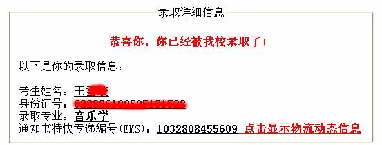為了積極貫徹實施高考陽光工程,不斷加強招生信息化和服務平臺建設,建立完善公開透明的高校招生工作服務體系,并使考生和家長得到更加優質的服務,我校招生就業處研發了高考通知書的郵遞查詢系統。此系統為考生和家長提供了通知書郵遞動態查詢的功能,在陜西省高校中尚屬首創。