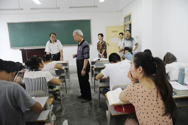 左曉民一行先后前往綜合樓教室、報告廳,向留校考研的同學詢問了復習的情況,征求了同學們的意見和建議。他指出,同學們放棄假期回家團聚和休閑、娛樂的時間,冒著酷暑和高溫留校緊張的學習需要很強的毅力,這種精神值得肯定。