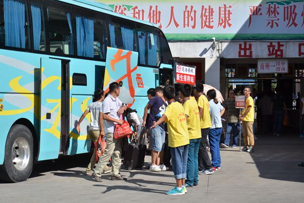 從火車站、汽車站到校門口,我校出動(dòng)數(shù)輛校園直達(dá)公交,在車站設(shè)立多個(gè)迎新點(diǎn)日夜不間歇接送新生,接站帶隊(duì)老師和志愿者們一路引領(lǐng)新生安全抵達(dá)校園。