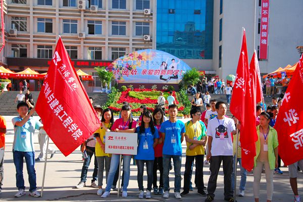 一踏進(jìn)校園,花卉的芳香隨秋風(fēng)撲面而來,艷紅色的熱氣球拉起印有“讓青春的笑臉,寫滿激情的詩(shī)篇”“讓青春的笑聲,點(diǎn)綴和諧的樂章”等6條橫幅,歡迎新生入學(xué)。同時(shí),各院還懸掛起了“今日我以母校為榮,明天母校為我驕傲”“寒窗十年終圓夢(mèng)今日重新起航,壯志豪情譜新篇我們攜手共進(jìn)”等標(biāo)語(yǔ),盡顯莘莘學(xué)子風(fēng)華正茂之氣。