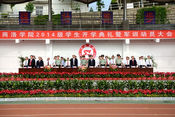 9月5日,我校隆重舉行2014級新生開學典禮暨軍訓動員大會。校領導張景書、劉建林、左曉民、王思懷、魏書堂,解放軍西安政治學院政治部主任徐自軍大校,2014級學生軍訓團團長、解放軍西安政治學院楊定友大校,商州區武裝部部長關海鵬出席了大會。校黨委書記張景書向承訓教官授2014級學生軍訓團團旗,校黨委副書記、校長劉建林作了重要講話。大會由校黨委副書記左曉民主持。各院部黨政負責人、各職能部門負責人與2014級新生參加了大會。