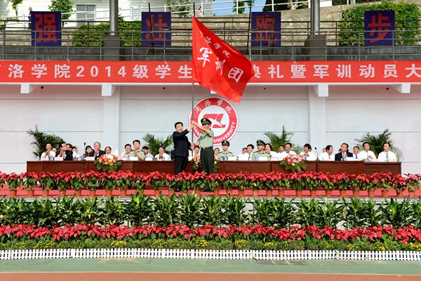 劉建林代表學校黨委和行政以及全校師生員工向全體新生表示熱烈歡迎,向獲得優秀新生獎學金和新生單項獎學金的同學表示衷心的祝賀。他對2014級新生提出了胸懷理想、志存高遠;修身養德、學會做人;勤于思考、學會學習;上好軍訓第一課,磨礪意志,增強體質等四點要求。他指出,新生要通過軍訓的磨礪,提高思想政治覺悟,激發愛黨愛國熱情,增強組織紀律觀念,為提高自我服務、自我管理的獨立生活能力和順利完成大學學業奠定堅實的基礎。劉建林寄語廣大新生,站在大學這個新起點上,要用生命中最寶貴的時光,努力學習,學會做人、做事、做學問,成為有知識、有道德、能為實現中國夢做出貢獻的人。