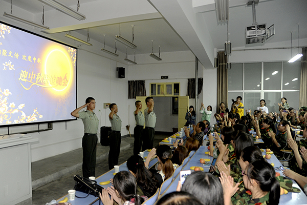 中秋團圓夜,商院共此時。一年一度的中秋佳節來臨,為了豐富2014級新生的軍訓生活,9月8日晚,我校各學院紛紛舉辦新生中秋聯誼晚會。校黨委副書記左曉民,學生處處長石啟英走進晚會現場,并代表學校向全體師生和軍訓教官致以節日的問候。
