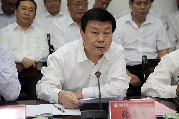 校黨委書記張景書在致辭中代表學校對巡視診斷專家組表示熱烈歡迎。他指出,作為一所新建地方性本科院校,我校經過全體教職員工的艱辛工作,取得了一定成績,但是要實現學校可持續、高水平發展,還存在許多深層次的問題和困難。省委趙書記指出的“三化”問題,在我校也不同程度的存在。當前,我校正處在向應用技術大學轉型發展的起步階段、迎接教育部本科教學合格評估的關鍵時期,巡視診斷專家組來到我校,對學校發展狀況進行把脈,幫助學校找出病根、開出藥方,一定能為學校今后的發展指明方向。張景書表示,我校將積極、全力配合專家組的工作,以巡視診斷為契機,深入總結和分析辦學過程中取得的成績和存在的差距,認真按照專家意見全面做好整改提高,積極根據高等教育發展的新形勢、新要求,進一步理順內涵發展思路,更新教育觀念,深化教學改革,加強教學管理,提高教學質量,為區域經濟社會發展培養更多應用技術型人才,作出新的更大的貢獻。