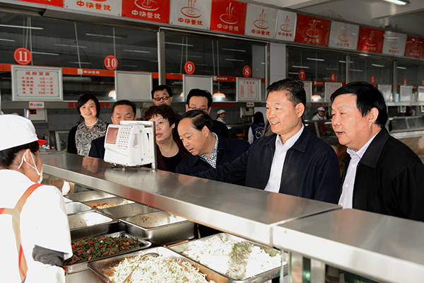 在校黨委書記張景書、黨委副書記左曉民、紀委書記王思懷和副校長魏書堂的陪同下,李興旺一行視察了我校圖書館、體育場、學生食堂和新綜合教學樓建設工地等處,詳細了解了我校辦學條件、師資力量、學科專業建設、招生就業等情況。