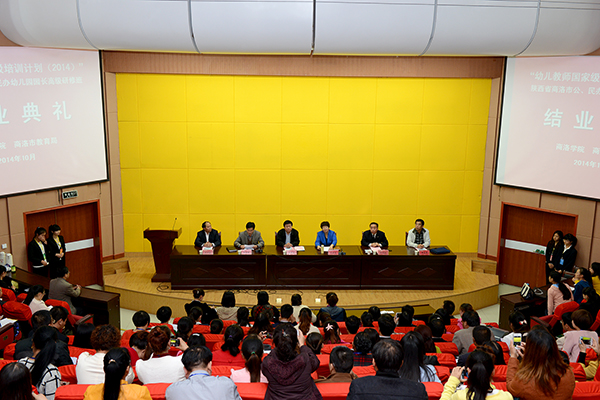 10月20日,我校承擔的幼師國培(2014)”陜西省公(民)辦幼兒園院長高級研修項目圓滿結束,172名來自商洛各區縣的幼兒園園長在經過為期10天的培訓后全部順利結業。在培訓班結業之際,商洛市副市長劉榮賢,校黨委書記張景書、校長劉建林和紀委書記王思懷來到全體學員中間,與他們合影留念。劉榮賢還在結業典禮上向全體學員提出了殷切的期望。