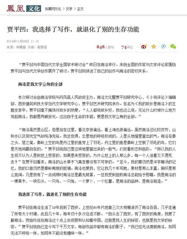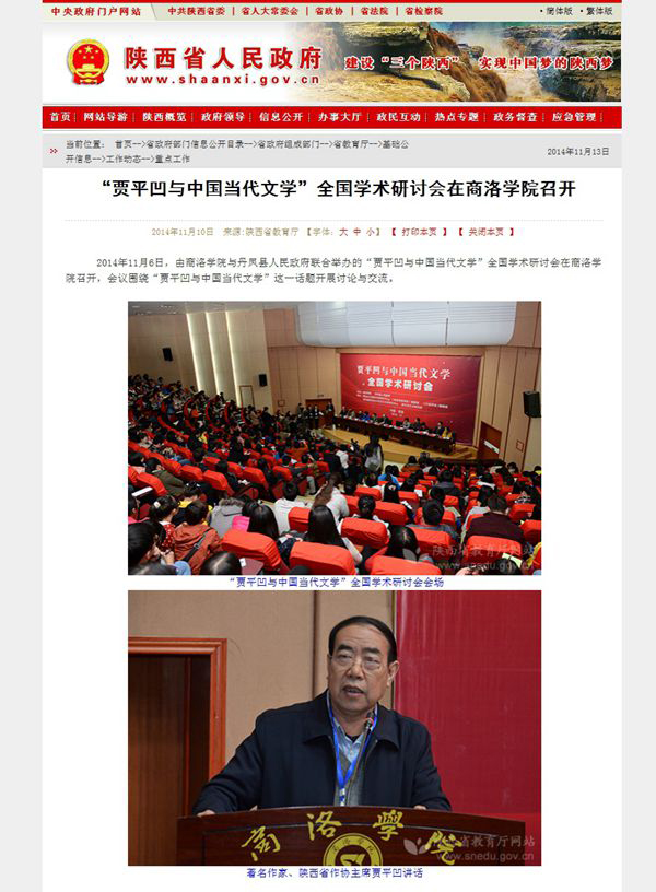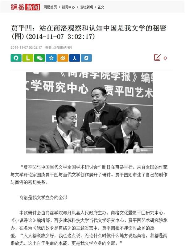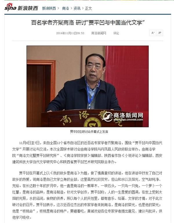 新浪:《百名學者齊聚商洛 研討“賈平凹與中國當代文學”》