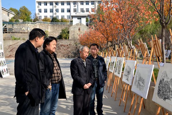 在洛南寫生活動期間,師生參觀了“墨韻華陽寫生展”,與諸多畫家交流學(xué)習(xí),通過觀摩,開闊眼界,吸取營養(yǎng)。