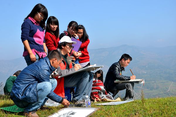 美術(shù)學(xué)專業(yè)開設(shè)的秦嶺山水寫生課,旨在打造藝術(shù)學(xué)院美術(shù)系特色課程。美術(shù)學(xué)2012級近百名同學(xué)深入秦嶺,先后在仙娥湖、華陽寫生基地、石坡韃子梁等地對景寫生。通過寫生活動,同學(xué)們體驗(yàn)了生活,驗(yàn)證了皴法、錘煉了筆墨。同學(xué)們在山水畫的選景、取舍、構(gòu)圖、筆墨語言等方面進(jìn)行了探索。美術(shù)學(xué)2013級的同學(xué)分別到秦嶺華陽寫生基地,太行山石板巖寫生基地以及安徽屏山寫生基地開展了為期兩周的色彩寫生。通過藝術(shù)實(shí)踐活動,開闊藝術(shù)視野,關(guān)注自然熏陶,激發(fā)表現(xiàn)靈感。從自然到藝術(shù)的轉(zhuǎn)化,有了一定的認(rèn)識和表現(xiàn)能力。