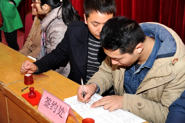 我校建筑工程管理專業應屆畢業生王昱程是本次招聘會首位成功簽約者。記者從采訪中了解到,他所簽約的陜西昱隆建筑工程有限公司與他擇業意向基本一致,就任崗位也與其所學專業對口。他表示對學校舉辦的這次校園招聘會感到非常滿意,并對招生就業處工作人員的精心組織與熱情幫助致以誠摯的感謝。