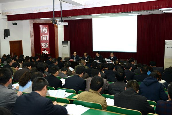 張景書指出,習(xí)近平總書記來陜視察重要講話全面而深刻地闡述了事關(guān)我省發(fā)展全局和長遠(yuǎn)的一系列重大問題,集中體現(xiàn)了對陜西發(fā)展的關(guān)心重視和對家鄉(xiāng)人民的深厚感情,為我們當(dāng)前主動適應(yīng)經(jīng)濟(jì)社會發(fā)展新常態(tài)、深化高等教育領(lǐng)域綜合改革、全面加強(qiáng)高校黨的建設(shè)指明了方向,提供了遵循。要認(rèn)真學(xué)習(xí)領(lǐng)會習(xí)近平總書記在講話中提出的“五個扎實(shí)”的深刻內(nèi)涵和核心要義,把思想和對工作的認(rèn)識統(tǒng)一到習(xí)近平總書記重要講話的精神上來,認(rèn)清我們面臨的形勢和任務(wù),認(rèn)清我們肩負(fù)的歷史使命,認(rèn)清我們的責(zé)任擔(dān)當(dāng),從中汲取政治營養(yǎng),明確前進(jìn)方向,激發(fā)內(nèi)生動力,把學(xué)習(xí)轉(zhuǎn)化成我們奮發(fā)工作、銳意進(jìn)取、攻堅(jiān)克難的強(qiáng)大力量。要認(rèn)真按照“五個扎實(shí)”要求,結(jié)合學(xué)校實(shí)際扎實(shí)推進(jìn)我校改革發(fā)展工作。