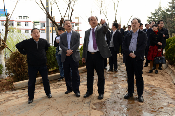 簽約儀式前,在張景書、劉建林、王思懷、魏書堂、范新會(huì)、劉寶盈等校領(lǐng)導(dǎo)的陪同下,張盈安一行參觀了我校教學(xué)綜合大樓工地、運(yùn)動(dòng)臺(tái)地、青年教師公寓和學(xué)生公寓工地、圖書館前通道施工現(xiàn)場(chǎng)和圖書館、尾礦資源綜合利用省級(jí)重點(diǎn)實(shí)驗(yàn)室、秦嶺植物標(biāo)本陳列室和我校辦學(xué)成果展室等處。