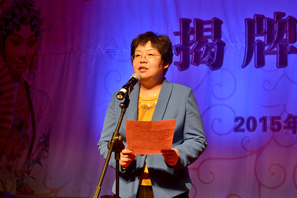 商洛市人民政府副市長劉榮賢代表商洛市委市政府對商洛學院戲曲學院的成立表示熱烈祝賀,對廣大藝術工作者和長期支持商洛市文化教育事業發展的各界朋友表示衷心感謝。她在講話中說,商洛學院戲曲學院的成立是商洛文化與教育融合發展的一大喜事,也是商洛戲曲藝術發展的一件盛事,商洛素有“戲曲之鄉”的美譽,推出了眾多藝術精品,受到了黨和國家領導人的高度評價,擴大了商洛戲曲在全省全國的影響力,豐富了廣大人民群眾的精神生活。她指出,戲曲學院是認真學習、貫徹落實習近平總書記在文藝工作座談會上的講話精神和習近平總書記來陜視察講話精神的有力舉措,對推動商洛市地方文化的發展,推動商洛地方特色文化進校園進教室進課堂、培養高素質的戲曲專業人才、不斷提高商洛戲曲藝術發展水平有著十分重大的意義。她要求,商洛學院、商洛市文廣局、商洛市劇團要齊心協力辦好戲曲學院,努力實現教學研究與戲曲的發展共贏,把商洛市戲曲藝術的發展推向一個更高的水平;充分發揮和利用好戲曲學院這個平臺,積極投身于商洛學院戲曲藝術的研究教育和發展,不斷弘揚社會主義核心價值觀,挖掘地方文化特色,為文化強市和建設幸福商洛做出貢獻。