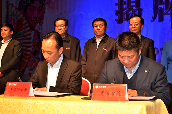3月31日晚,由我校與商洛市劇團聯合成立的商洛學院戲曲學院揭牌儀式在市劇團小劇場隆重舉行。我校80屆校友、陜西省政府副秘書長、省政府機關事務局局長孟軍,商洛市政府副市長劉榮賢出席揭牌儀式,共同見證這一校地合作的盛事。我校黨委書記張景書、商洛市文廣新局局長周云岳為戲曲學院揭牌,我校副校長范新會、商洛市劇團團長李小斌簽署聯合成立商洛學院戲曲學院協議書,商洛市文廣新局局長周云岳代表鑒證方在協議書上簽字。揭牌儀式由校紀委書記王思懷主持。