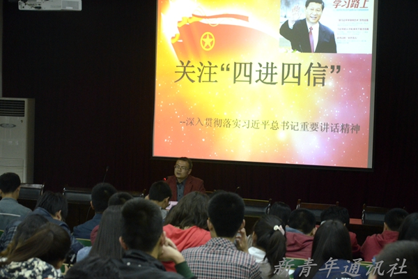 4月15日晚,校團委組織各學生組織干部召開學習習近平總書記系列重要講話精神“四進四信”活動座談會。校團委副書記彭曉邦為廣大學生干部作了專題報告。