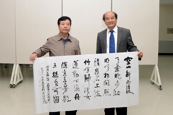 劉建林在致辭中指出,王安泉教授傾心繪畫(huà)四十年,速寫(xiě)山水人物萬(wàn)余幅,創(chuàng)作山水人物萬(wàn)余幅,他深厚的書(shū)畫(huà)功底背后蘊(yùn)含著他樸實(shí)無(wú)華的做人做事的風(fēng)格和對(duì)藝術(shù)執(zhí)著的追求。王安泉以秦嶺為背景研究“商於古道”,以古道歷史文化為題材,將儒道哲學(xué)文化融入畫(huà)作與生活。他厚實(shí)的文學(xué)、美學(xué)功底以及對(duì)書(shū)法、繪畫(huà)、歷史、經(jīng)濟(jì)等方面的研究支撐著他在書(shū)法界的成就。作為應(yīng)用型本科學(xué)校,我校極致力于培養(yǎng)應(yīng)用型人才,如今正處于迎評(píng)促建階段,學(xué)院的發(fā)展離不開(kāi)社會(huì)各界的大力支持,此次兼職教授授聘活動(dòng)將會(huì)大力促進(jìn)我院的發(fā)展,為教師隊(duì)伍建設(shè)提供強(qiáng)有力的推動(dòng)力。