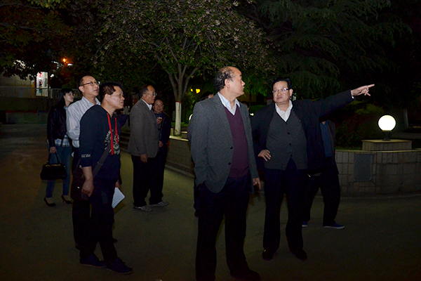 4月23日晚,校長劉建林、副校長魏書堂、副校長劉寶盈在學校辦公室、保衛處、后勤保障處等相關負責人的陪同下,實地察看了校園內各路段路燈建設工作和校園環境狀況。