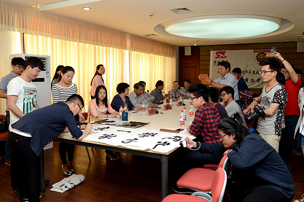 我校書畫協會還向南開科技大學兩岸文化交流研習團師生贈送了現場創作的“兩岸學子一家親”“富貴牡丹”等書畫作品,以作紀念。