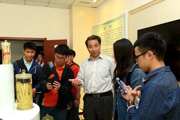 在生物醫藥與食品工程學院師生代表的陪同下,臺灣師生饒有興致地參觀了秦嶺植物標本陳列室,現場品嘗了生物醫藥與食品工程學院自釀的山茱萸葡萄酒,稱有家鄉桑葚果汁的味道。他們對秦嶺豐富的生物資源尤其是中藥資源興趣濃厚,紛紛拍照留念。