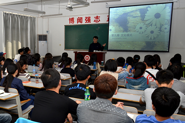 臺灣南開科技大學學子盧瑞林在經濟與管理學院《文化學教程》課上介紹臺灣文化