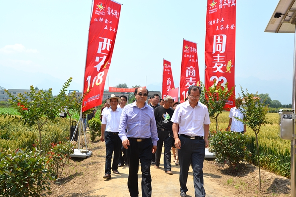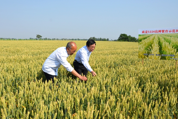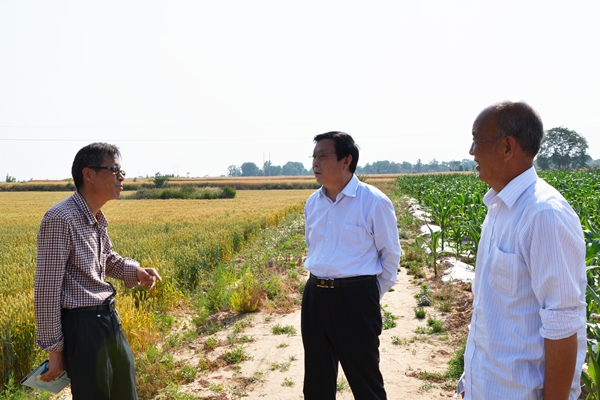 在咸陽市涇陽縣興隆鎮,張景書深入商麥“5226”示范田,與商麥種植示范戶親切交談,觀摩了商麥的抗旱性、長勢、落黃及籽粒飽滿情況,了解了商麥“5226”在今年多雨季節的抗病情況、產量及推廣面積。涇陽縣現代種業公司經理藏喜詳細介紹了商麥“5226”在渭北旱塬、甘肅隴南的實驗情況,并表示“商麥5226”有望成為渭北旱塬地區小麥主栽品種。