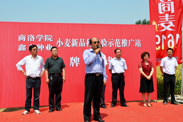 劉建林代表學校對我校周至縣小麥新品種試驗示范推廣站正式揭牌表示熱烈祝賀。劉建林指出,商洛學院近年來緊密結合當地主導產業,深入開展科學研究,加強科技成果轉化,尤其是在小麥育種方面取得了重要成果,通過周至小麥試驗站的建立,可以進一步發揮人才、技術優勢,加快商麥“5226”、“1619”等品種的轉化步伐,更好地支持渭北旱塬、秦巴山區及陜西周邊地區小麥品種的更新換代,力爭取得良好的經濟效益和社會效益,為服務“三農”做出貢獻。