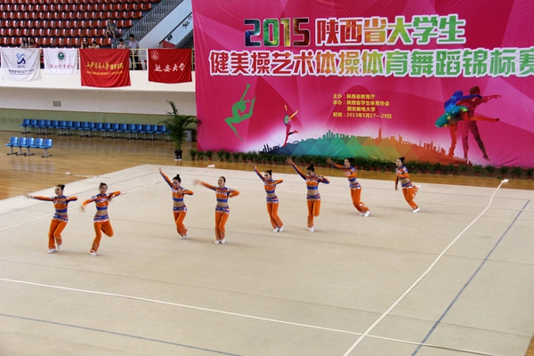 5月27日,由省教育廳主辦,省學生體育協會、西安郵電大學承辦的2015年陜西省大學生健美操、藝術體操、體育舞蹈錦標賽在西安郵電大學長安校區體育館舉行。本次比賽有來自全省的28個高校代表隊600多人參賽。