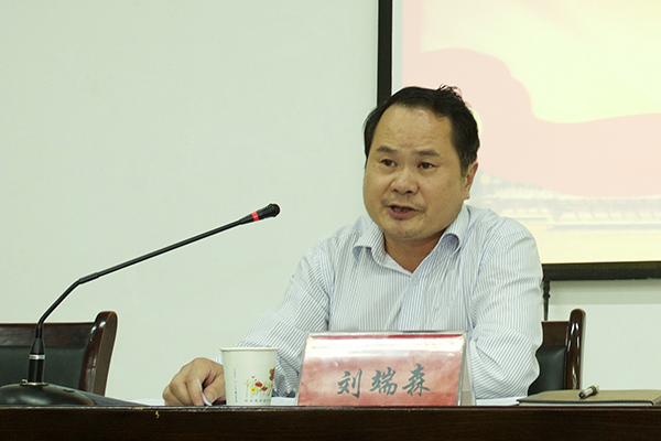 劉端森主講了題為《踐行“三嚴三實”是黨對我們的基本要求》的黨課。他圍繞“三嚴三實”提出的背景、必要性和重要性,“三嚴三實”的科學內涵以及如何踐行“三嚴三實”等三個方面進行了詳細闡述。他指出,在全面深化改革的今天,我國面臨的國內外形勢依然錯綜復雜,支撐改革發展的要素條件也在發生深刻變化,全體黨員及各級領導干部必須以“三嚴三實”來要求和對照自己,自覺踐行“三嚴三實”,深入推進作風建設,做一名人民群眾滿意的黨員好干部。